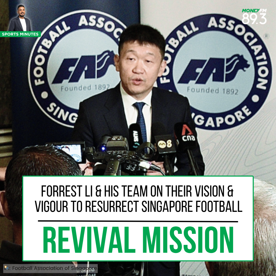 | 07/08/25 - Sports Minutes: Forrest Li & his team share their vision and vigour to resurrect Singapore football  A bombshell SEA Games omission. A league with no sponsor. A national team in transition. On his 100th day in charge, Forrest Li & his team had some hard questions to answer. Reporting from the FAS Media Day, Sports Minutes recaps how Singapore football’s new leadership is plotting a bold revival - and why the road ahead will need more than just vision and vigour.