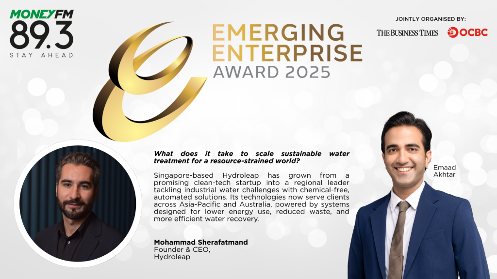 On this episode of the 2025 OCBC Emerging Enterprise series, Mohammad Sherafatmand, Founder and CEO of Hydroleap and one of this year’s Emerging Enterprise Award winners, shares how his company is reimagining industrial water treatment, the breakthroughs driving their rapid growth across Asia-Pacific, and the role they hope to play in accelerating the shift toward a greener, more resource-efficient economy.